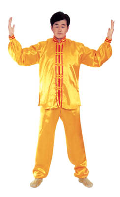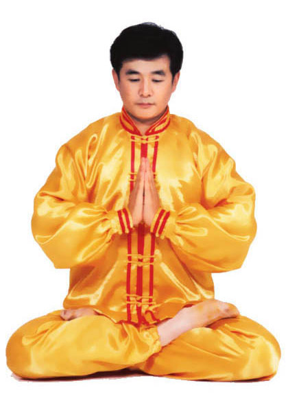 Trước lúc luyện công ý tưởng một chút rằng tự mình [như] là hai thùng rỗng rất cao lớn, sừng sững giữa trời đất, cao lớn không gì sánh được[16]. Khí bên trong [thân] thể thuận theo tay mà [chuyển] động lên xuống, xung lên khỏi đỉnh đầu, trực tiếp tới cực nơi cao nhất của vũ trụ; khí xung xuống sẽ qua từng chân mà xung ra, xung tới cực nơi thấp nhất của vũ trụ. Sau đó khí theo tay mà [chuyển] động, từ hai cực mà quay về trong [thân] thể, rồi lại xuất ra theo hướng ngược lại, lặp lại như thế chín lần. Khi xung quán tới lần thứ chín, thì tay trái (nữ tay phải) ở cực trên mà đợi tay phải (nữ tay trái) đưa lên. Sau đó [hai tay] đồng thời quay về hạ xuống quán nhập vào chỗ cực nơi thấp, [rồi lại] qua thân thể mà xung quán lên, sau khi lặp lại chín lần thì thu khí trở về. Sau khi thu trở lại, thì ở chỗ bụng dưới mà xoay chuyển Pháp Luân theo chiều kim đồng hồ, làm cho khí bên ngoài [thân] thể xoay trở về bên trong [thân] thể, sau đó kết ‘định ấn’[17], luyện công xong thì thu thế chứ không thu công.